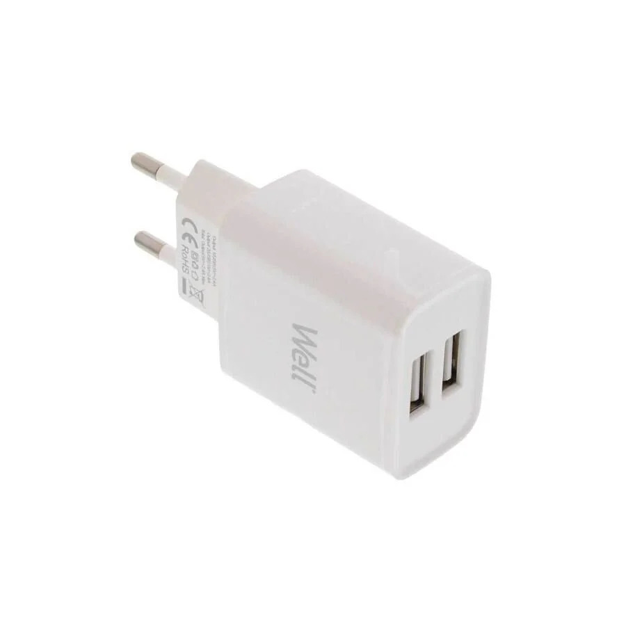 Universal 2xUSB FastTravel Wall Charger 5VDC/2.4A (12W) Λευκό Well PSUP-USB-W22401WE-WL