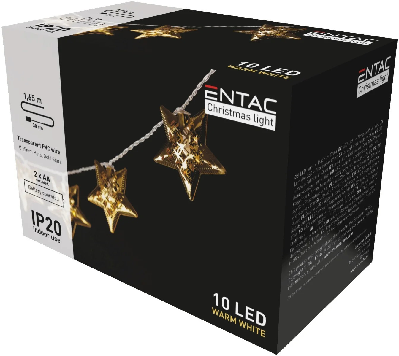Entac Χριστουγεννιάτικα Εσωτερικά Μεταλλικά Χρυσά Αστέρια 10 LED Θερμό 1,65μ (2xAA Δεν περιλαμβ.)