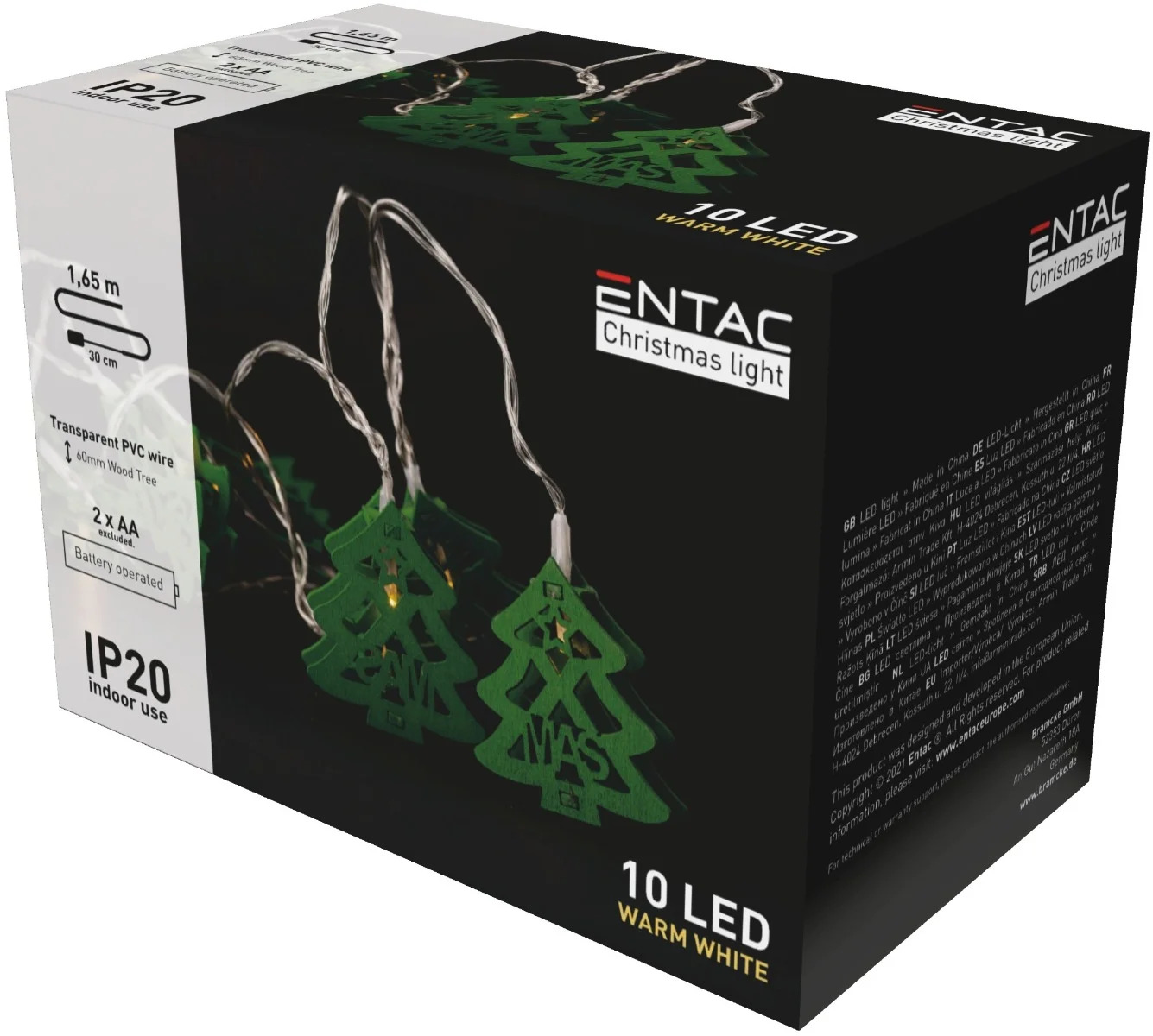 Entac Χριστουγεννιάτικα Εσωτερικά Ξύλινα Πράσινα Δέντρα 10 LED Θερμό 1,65μ