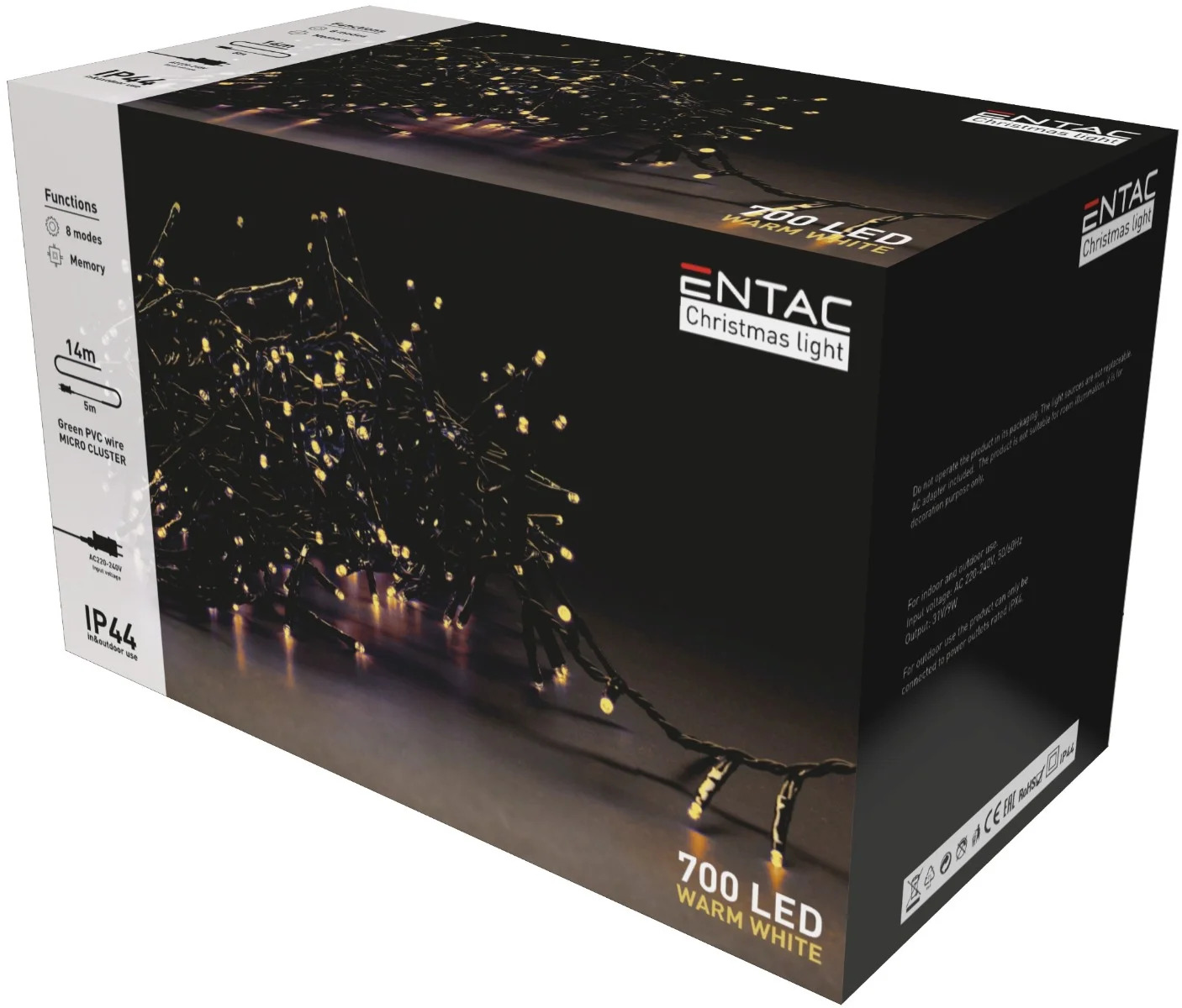 Entac Χριστουγεννιάτικα Λαμπάκια IP44 700 LED Ψείρες Θερμό 14m