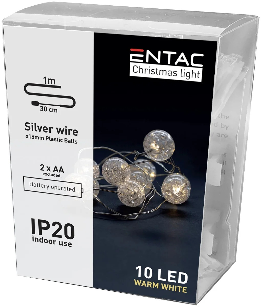 Entac Χριστουγεννιάτικες Πλαστικές Λάμπες Εσωτερικού Χώρου 10LED Θερμό 1m (2AA excl.)