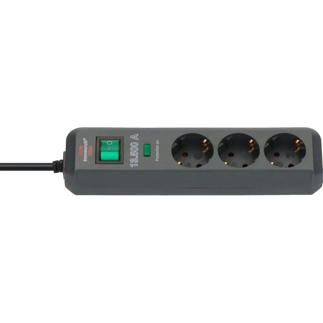 Πολύπριζο Αντικεραυνικής Προστασίας και Υπέρτασης 13.500A Brennenstuhl Eco-Line, Τριών Θέσεων Σούκο με Διακόπτη Ασφαλείας On/Off IP20 1.5 μ Μαύρο