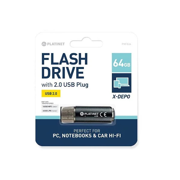 PLATINET USB 2.0 X-DEPO Flash Disk 64GB μαύρο PMFE64B