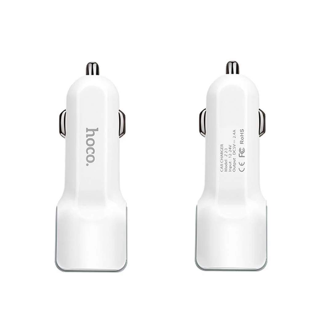 Φορτιστής Αυτοκινήτου Hoco Z23 Grand Style Dual USB Fast Charging 5V/2.4A 12W και Είσοδο 12/24V Λευκός