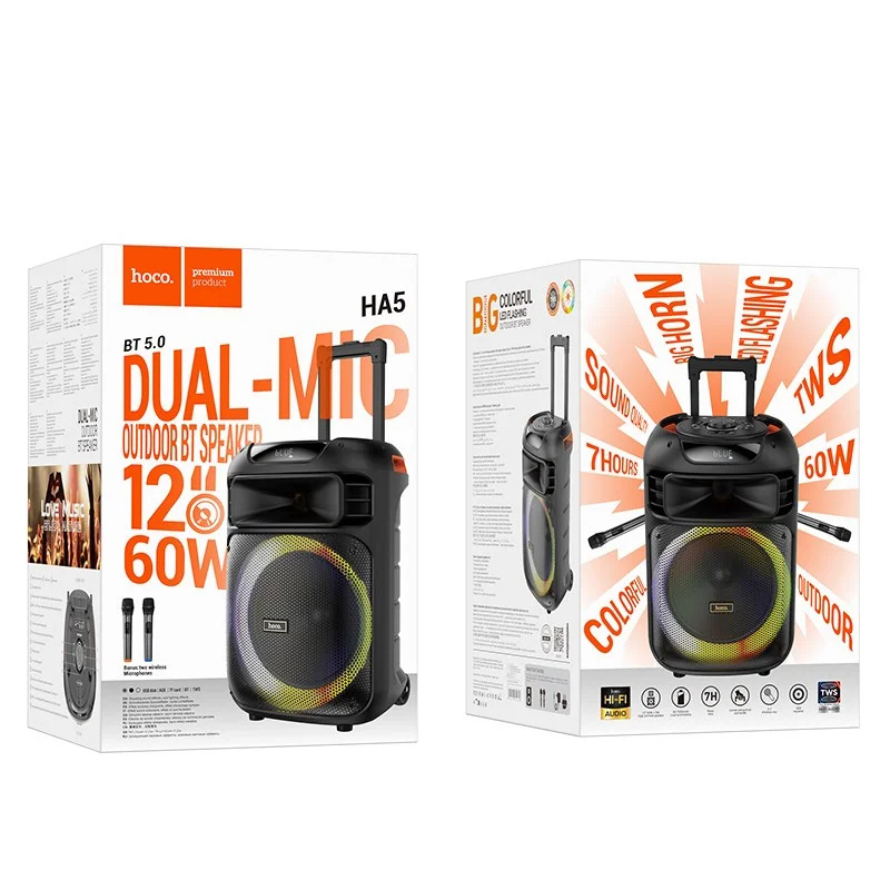 Φορητό Ηχείο Wireless Hoco HA5 Winner BT V5.0 60W 7000mAh 7h Αναπαραγωγή με TWS Micro SD USB και 2 Ασύρματα Μικρόφωνα
