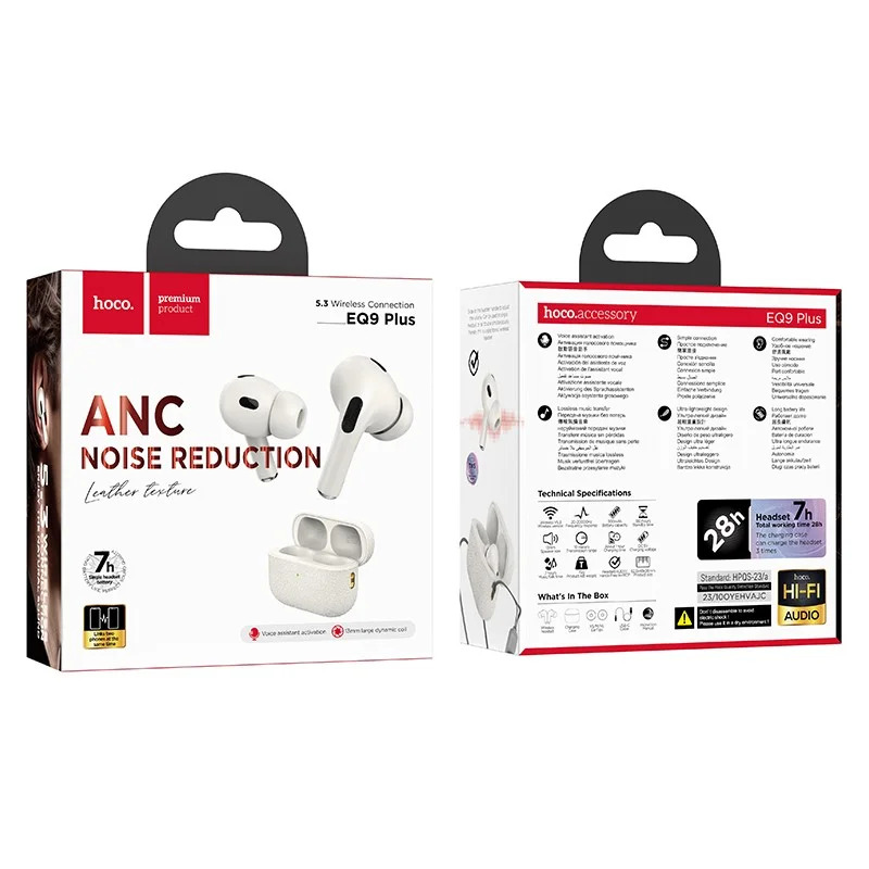 Wireless Hands Free Hoco EQ9 Plus Duke TWS V5.3 300mAh με 7 Ώρες Λειτουργίας και Active Noise Cancellation Συμβατό με Siri Λευκό