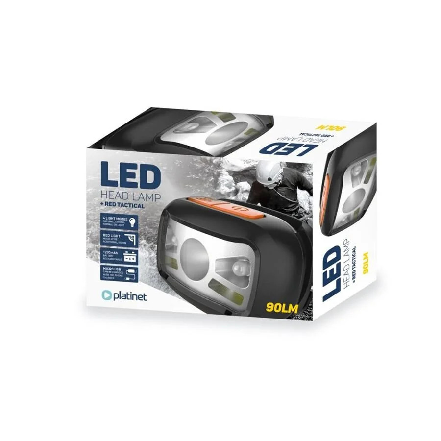 Φακός κεφαλής LED 3W 90LM Επαναφορτιζόμενος Platinet PHL2882
