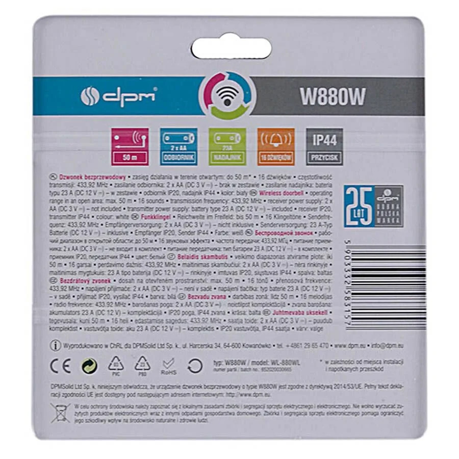 Κουδούνι ασύρματο πόρτας DC/DC 16 μελωδιών IP44 W880W