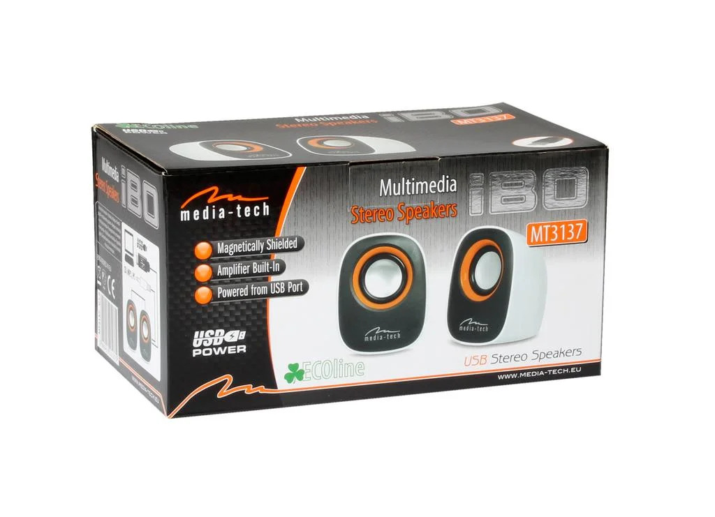 Ηχεία Stereo Media-Tech MT3137W IBO 3.5mm με Τροφοδοσία USB 6W Λευκά