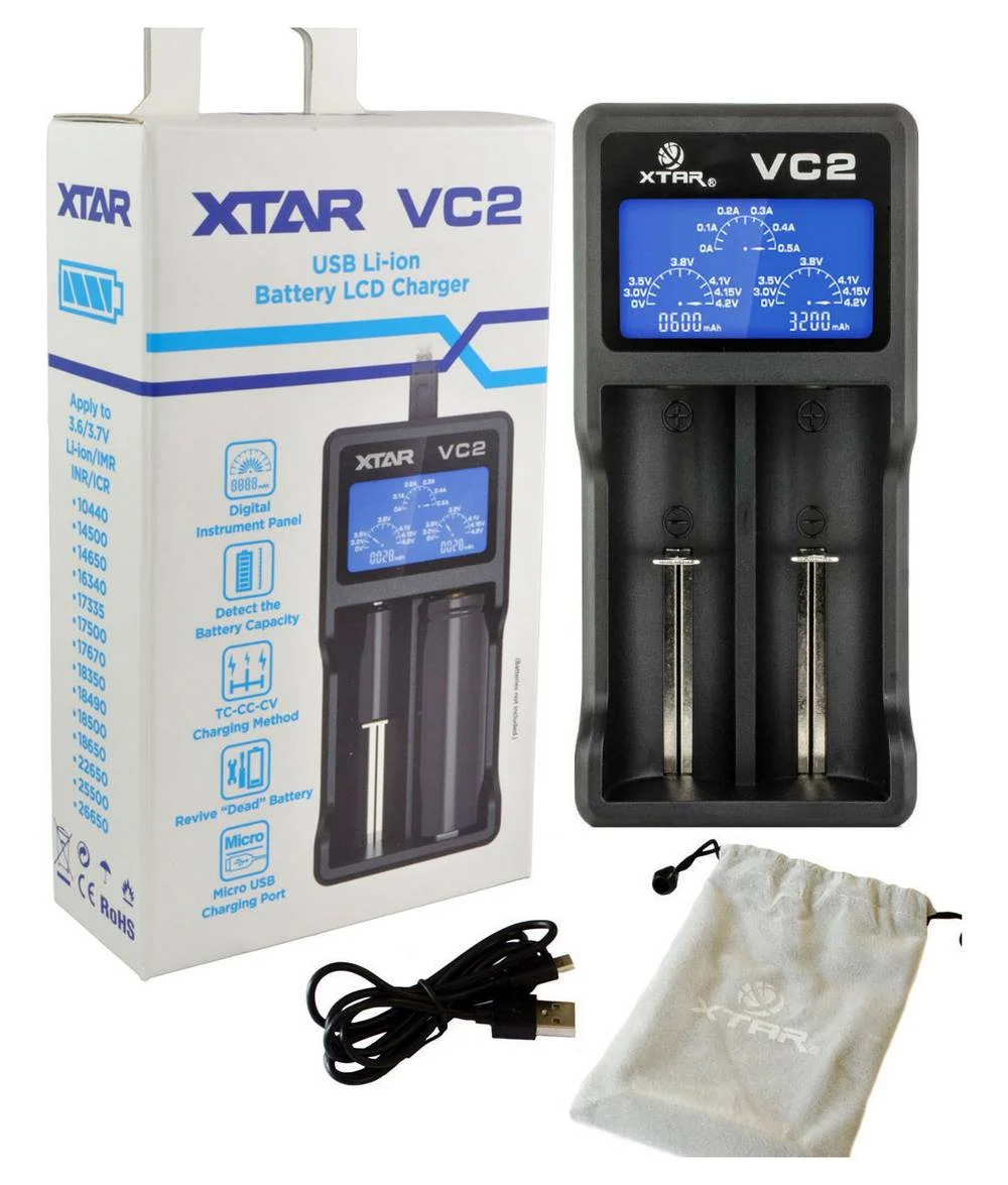 Φορτιστής Μπαταριών Βιομηχανικού Τύπου Xtar VC2 USB, 2 Θέσεων με Ένδειξη Επιπέδου Φόρτισης για 18650/17670/17500