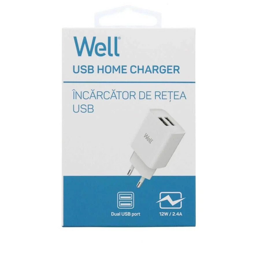 Universal 2xUSB FastTravel Wall Charger 5VDC/2.4A (12W) Λευκό Well PSUP-USB-W22401WE-WL