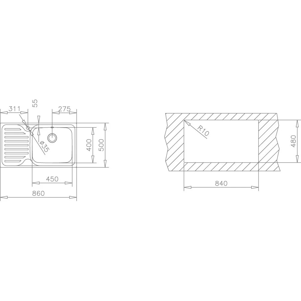 Νεροχύτης Inox TEKA 1 Γούρνα με Ποδιά Αριστερά για Ένθετη Τοποθέτηση 86x50cm CLASSIC MAX 1B 1D Λείος 11119201