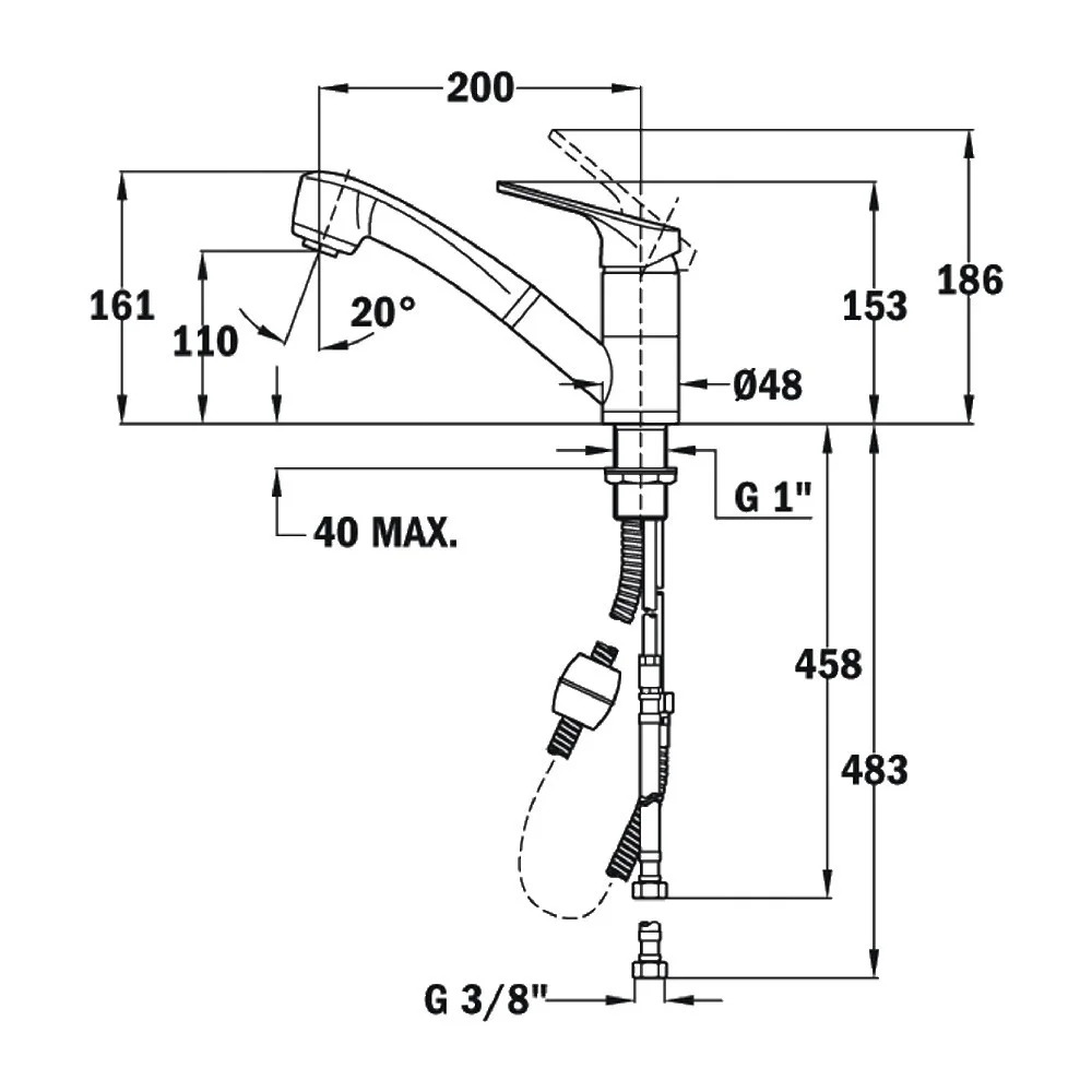 Μπαταρία Νεροχύτη Inox TEKA Χαμηλή, Περιστρεφόμενη με Pull-Out Ντους 2 Λειτουργιών MTP 978 1/2”Maestro 469780210