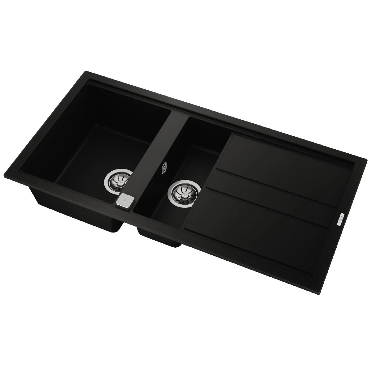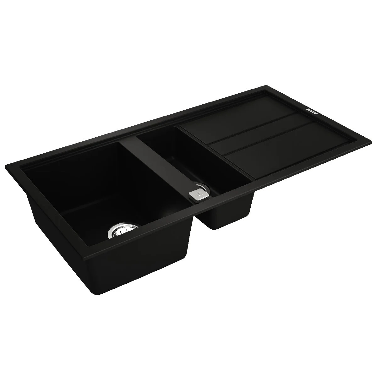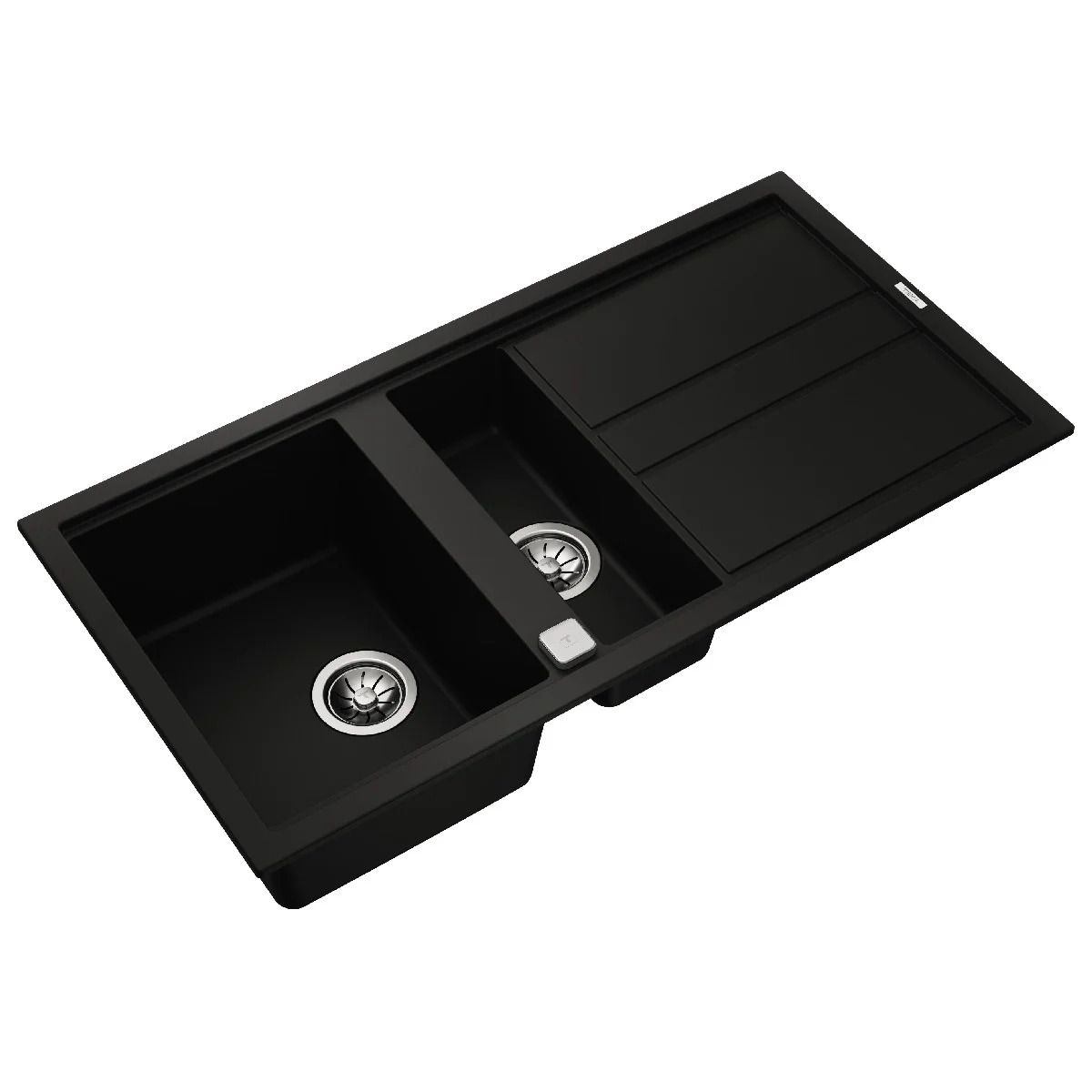 Νεροχύτης απο Συνθετικό Γρανίτη TEKA 2 Γούρνες με Ποδιά για Ένθετη Τοποθέτηση 100x51cm NOVA 60 MAESTRO Μαύρος 115360014