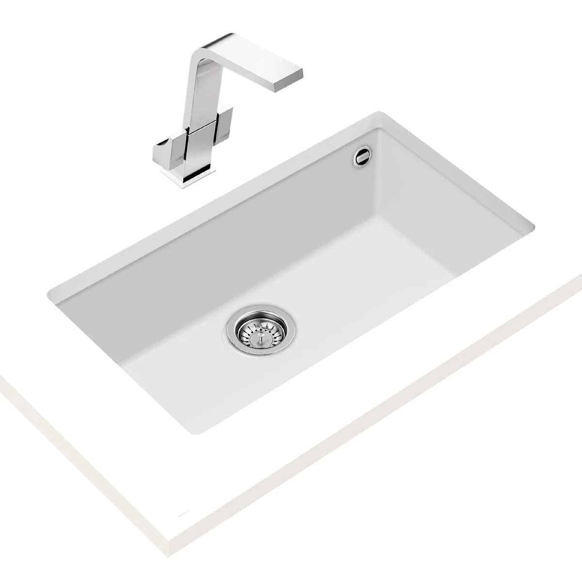 Νεροχύτης απο Συνθετικό Γρανίτη TEKA 1 Γούρνα για Υποκαθήμενη Τοποθέτηση 76x44cm SQUARE 72 MAESTRO Λευκός 115230019