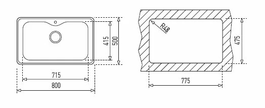 Νεροχύτης Inox TEKA 1 Γούρνα για Ένθετη Τοποθέτηση 80x50cm ΒΑΗΙΑ 80 TOTAL 40150000