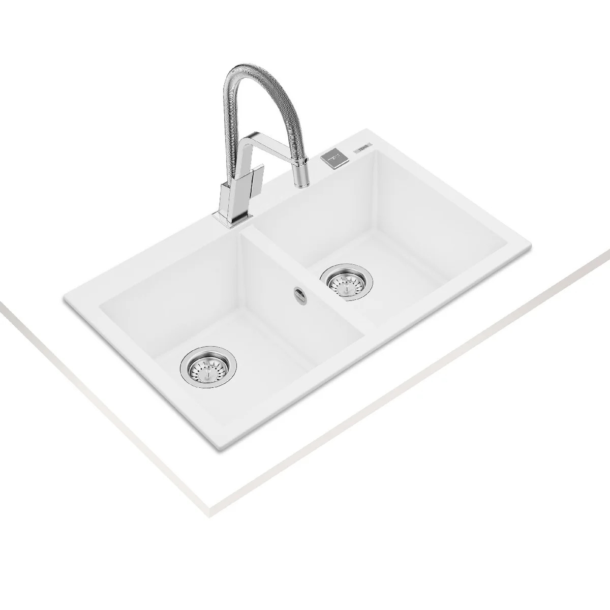 Νεροχύτης απο Συνθετικό Γρανίτη TEKA 2 Γούρνες για Ένθετη Τοποθέτηση79x50cm FORSQUARE 2B MAESTRO Λευκός 115260018