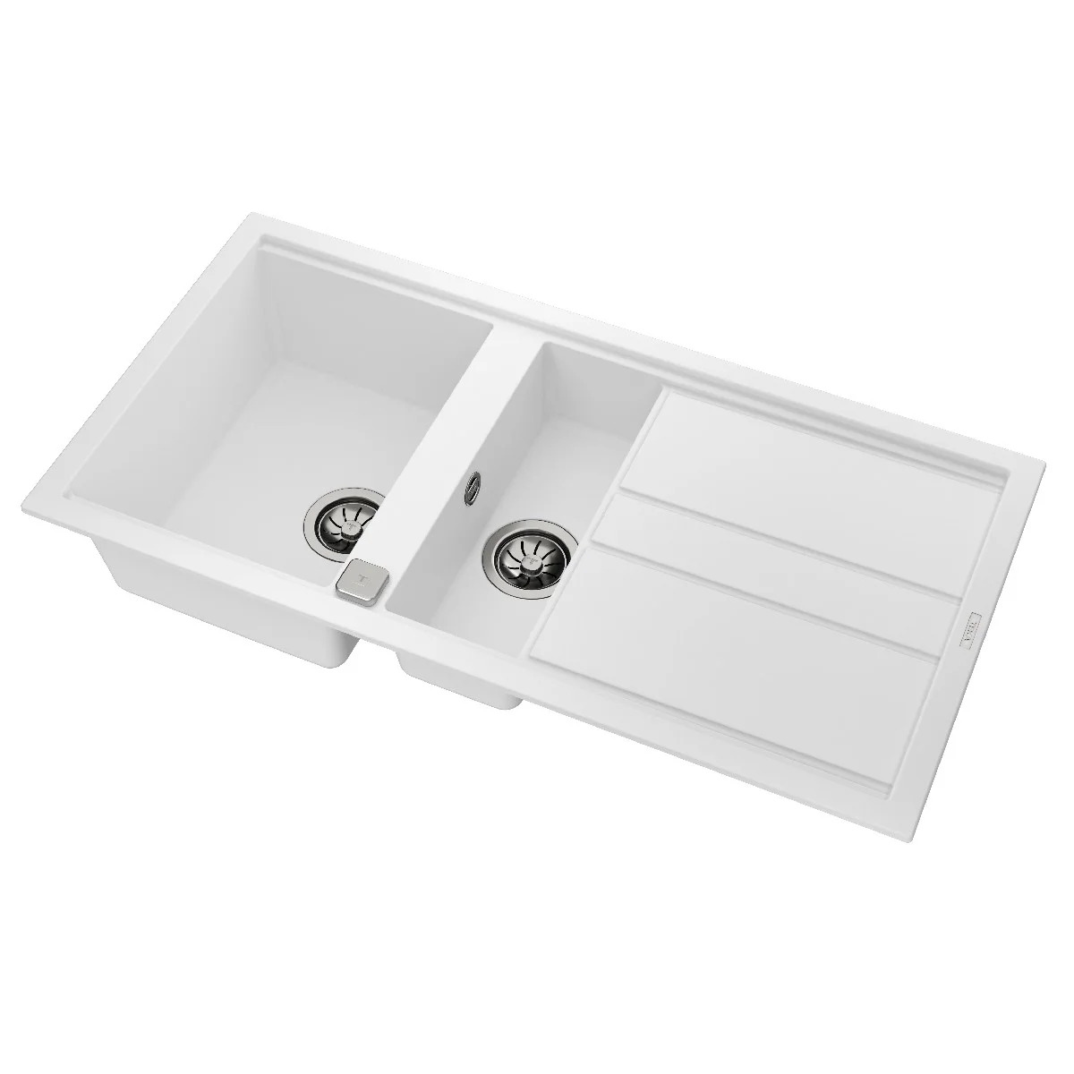 Νεροχύτης απο Συνθετικό Γρανίτη TEKA 2 Γούρνες με Ποδιά για Ένθετη Τοποθέτηση 100x51cm NOVA 60 MAESTRO Λευκός 115360015