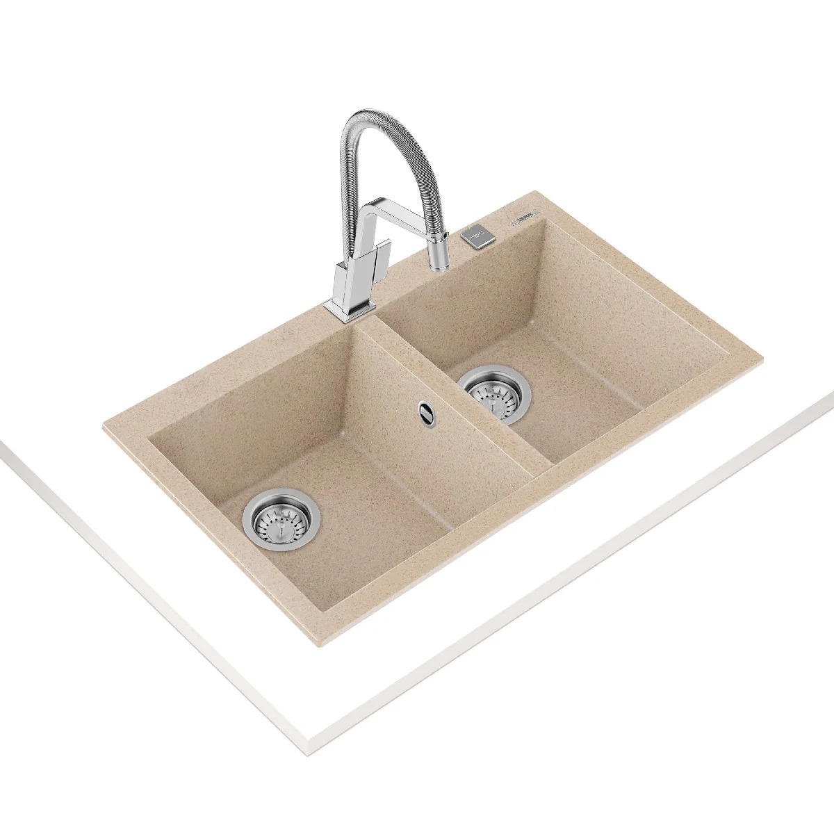 Νεροχύτης απο Συνθετικό Γρανίτη TEKA 2 Γούρνες για Ένθετη Τοποθέτηση79x50cm FORSQUARE 2B MAESTRO Μπεζ 115260016