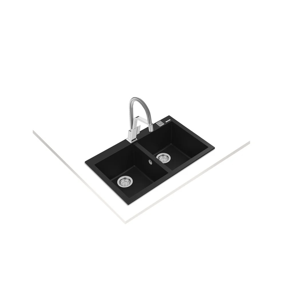 Νεροχύτης απο Συνθετικό Γρανίτη TEKA 2 Γούρνες για Ένθετη Τοποθέτηση79x50cm FORSQUARE 2B MAESTRO Μαύρος 115260014