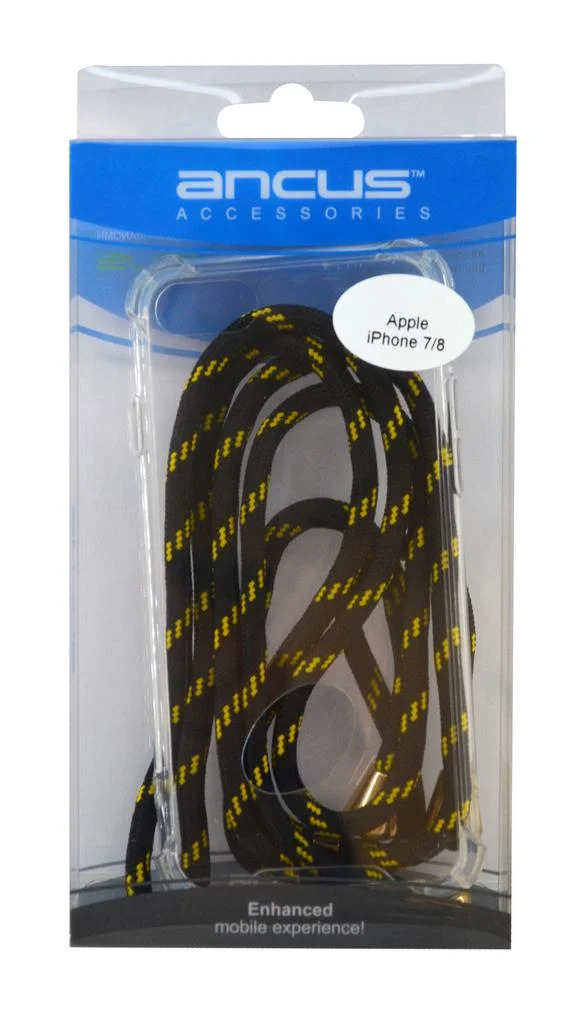 Θήκη Ancus Crossbody για Apple iPhone 7 / 8 / SE (2020) Διάφανη με Κορδόνι Κίτρινο-Μαύρο