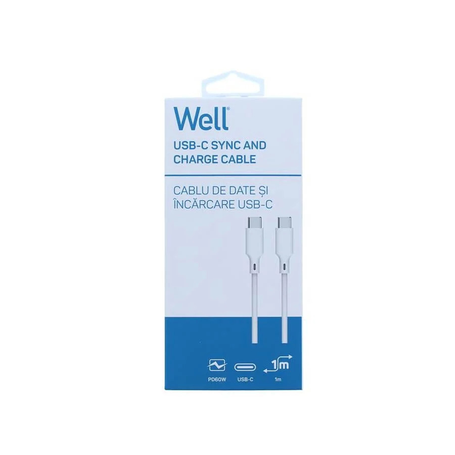 Καλώδιο 60W USB-C σε Type-C Φόρτισης - Data 1m Λευκό Well CABLE-USBC/USBC-1WE06-WL