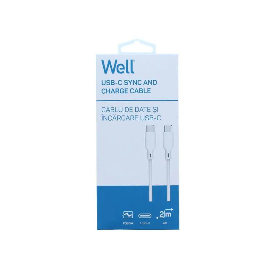 Καλώδιο 60W USB-C σε Type-C Φόρτισης - Data 2m Λευκό Well CABLE-USBC/USBC-2WE06-WL