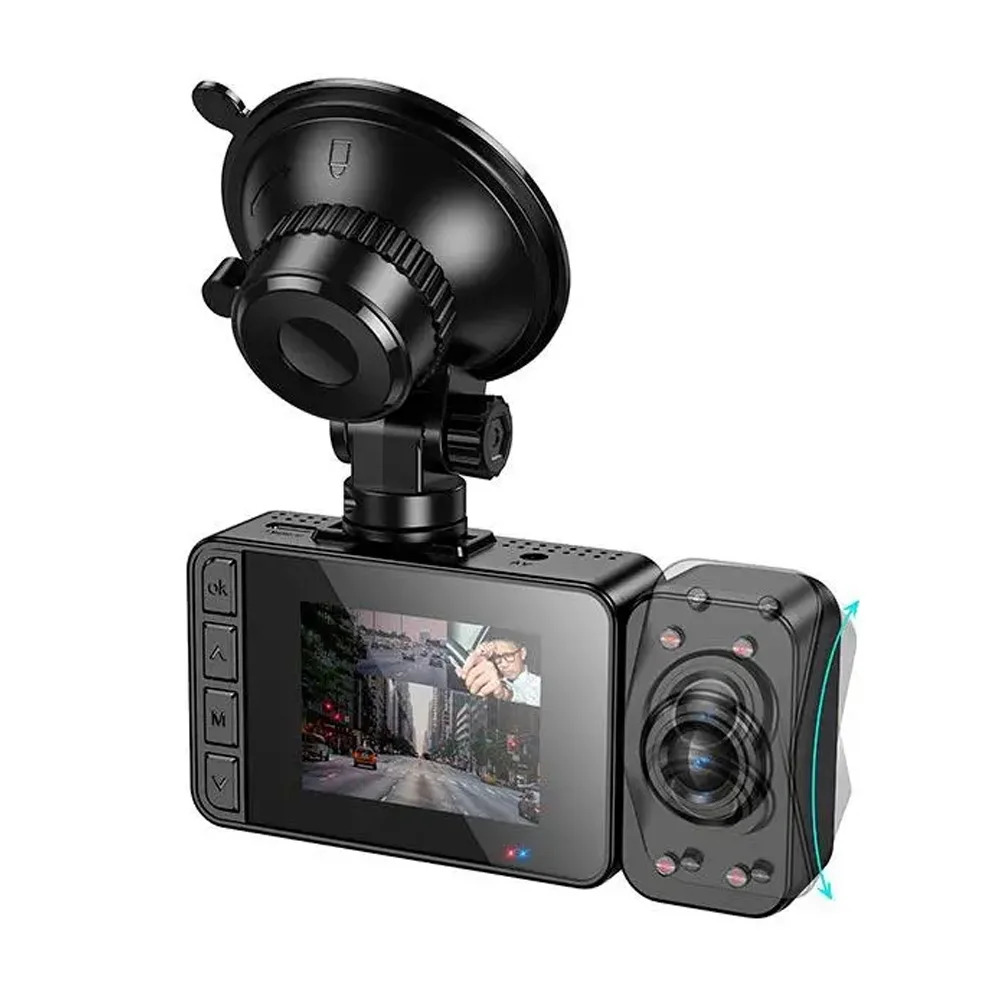 Καταγραφική Κάμερα Αυτοκινήτου Hoco DI62 Warrior 720p HD 150mAh Ultra Wide Γωνία Λήψης 145° 2" Οθόνη με Ταυτόχρονη Καταγραφή απο 3 Κάμερες