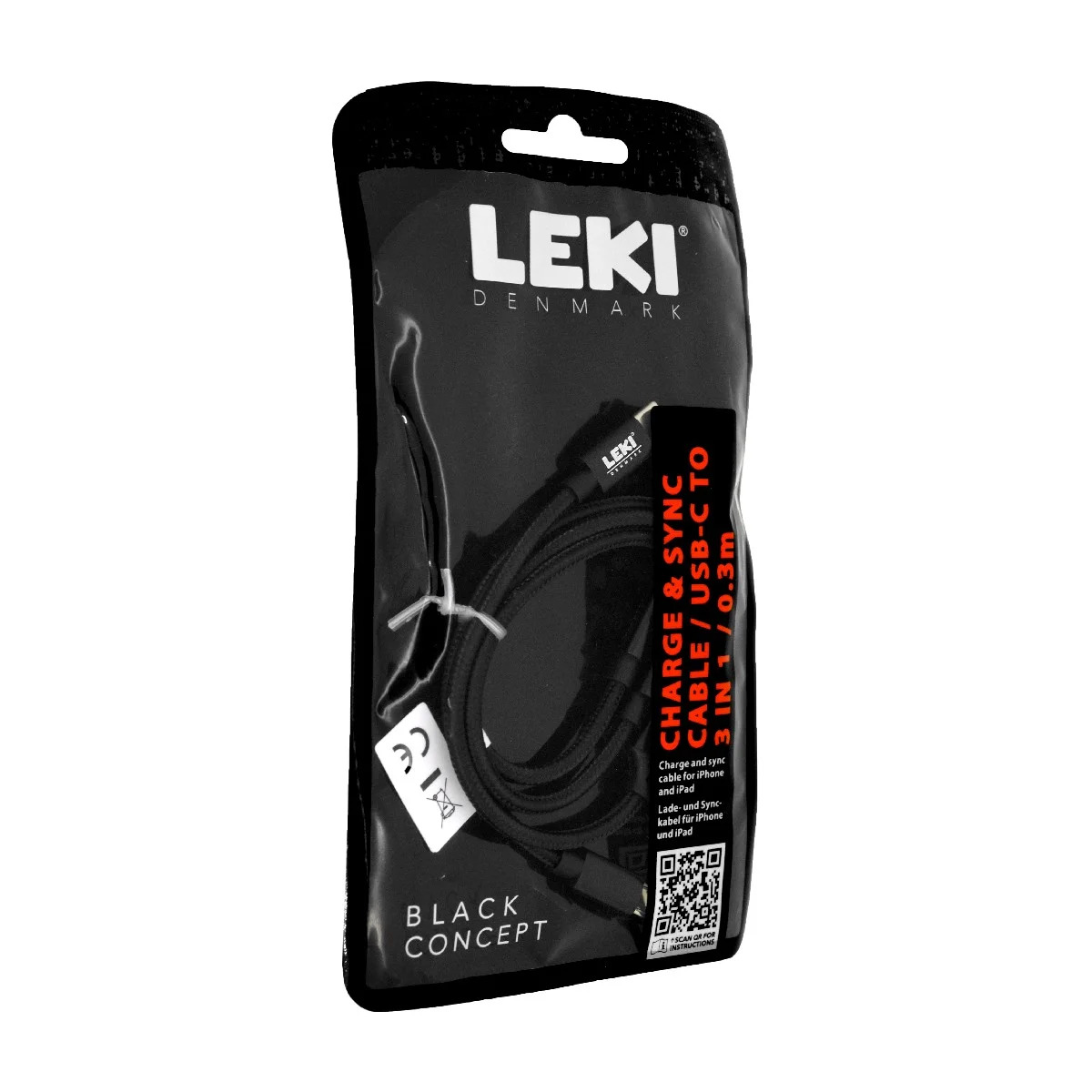 Καλώδιο Σύνδεσης και Φόρτισης Leki Black Concept USB-C σε Multiport USB-C/Lightning/MicroUsb Braided Μαύρο 0.3m