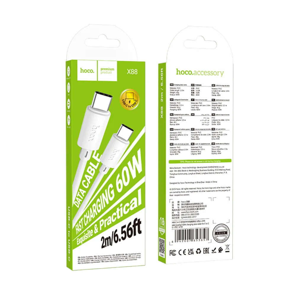 Καλώδιο Hoco X88 Gratified USB-C σε USB-C 60W 3A Λευκό 2m