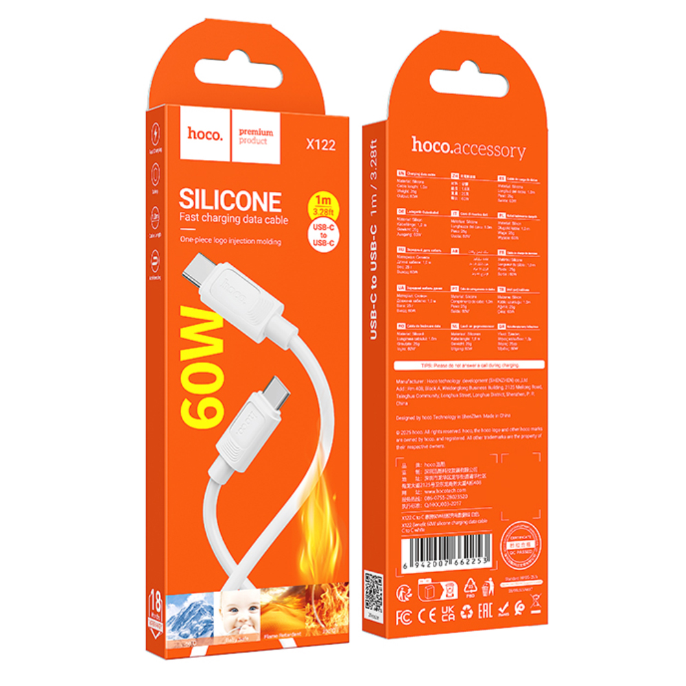 Καλώδιο σύνδεσης X122 Benefit USB-C σε USB-C PD60W 3A για Γρήγορη Φόρτιση Λευκο 1m
