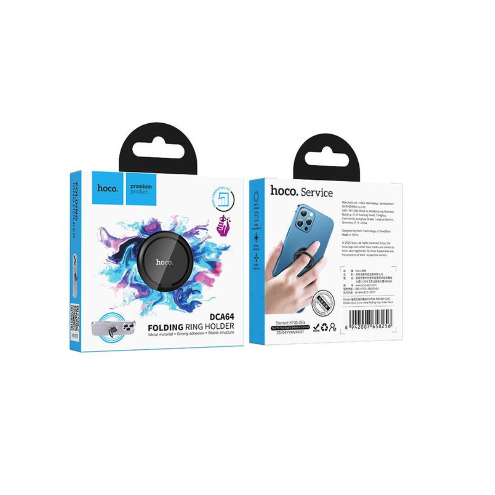Βάση Στήριξης Δαχτυλίδι Μεταλλική Hoco DCA64 για Κινητά Τηλέφωνα με 360° Περιστροφή Μαύρη