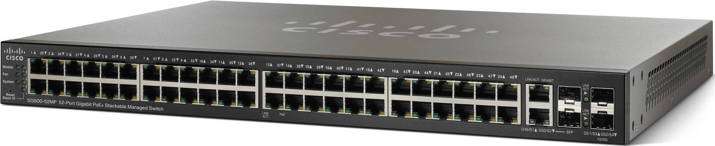 SWITCH CISCO SG500-52MP-K9 48-Ports Gigabit (2) 1G SFP or (2) RJ45, (2) 1G SFP POE+ 48 w/ Rkmnts