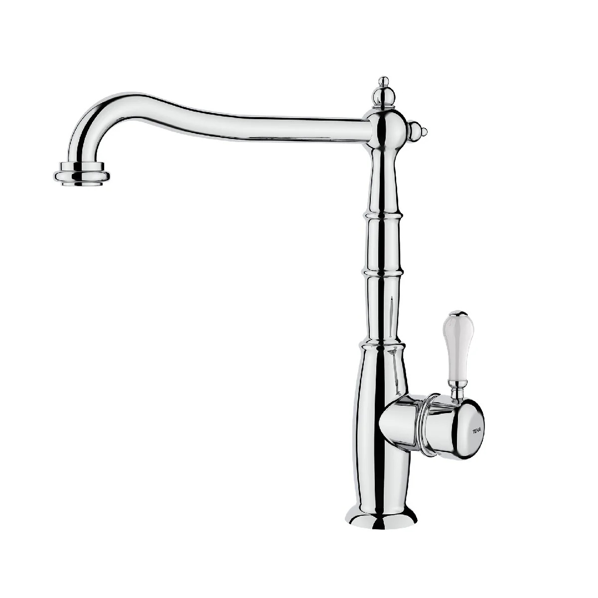 Μπαταρία Νεροχύτη Inox TEKA Περιστρεφόμενη με Retro Design & Κεραμικό Λευκό Χερούλι FO 915 3/8”-1/2”TOTAL 116030038